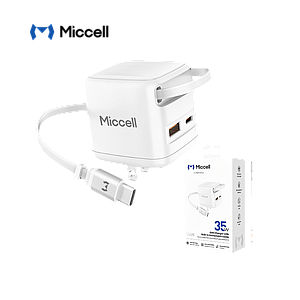 Cargador Miccell USB-C + 1 puerto USB-A Con cable Retractil USB-C 35W (VQ-T62)