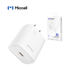Kit Cargador Miccell Puerto USB-C - USB-C con Cable USB-C 1.2mt 25W (VQ-T17)