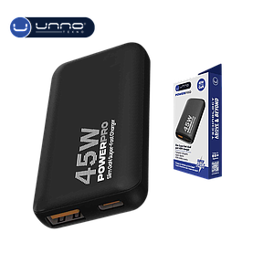 Cargador UNNO TEKNO 45W GaN Dual USB-A Y USB-C Negro (PW5069BK)