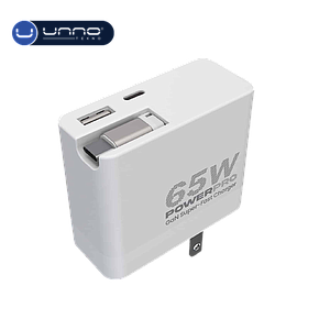 Cargador UNNO TEKNO Retractil 65W GaN Dual USB-A Y USB-C Blanco (PW5072BK)
