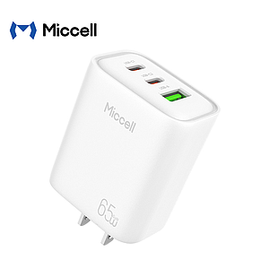 Cargador Miccell 2 Puertos USB-C + 1 puerto USB-A 65W Blanco (VQ-T57)